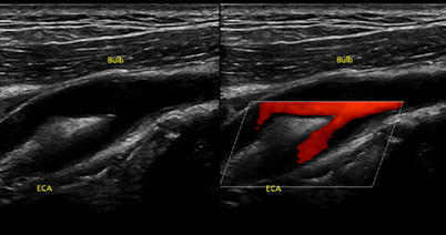 혈류 속도와 방향: 혈류의 속도를 측정하고 장비에서 혈관에 컬러를 띄워 관찰하는데 협착의 유무나 얼마나 심한지를 평가 할 수 있습니다.